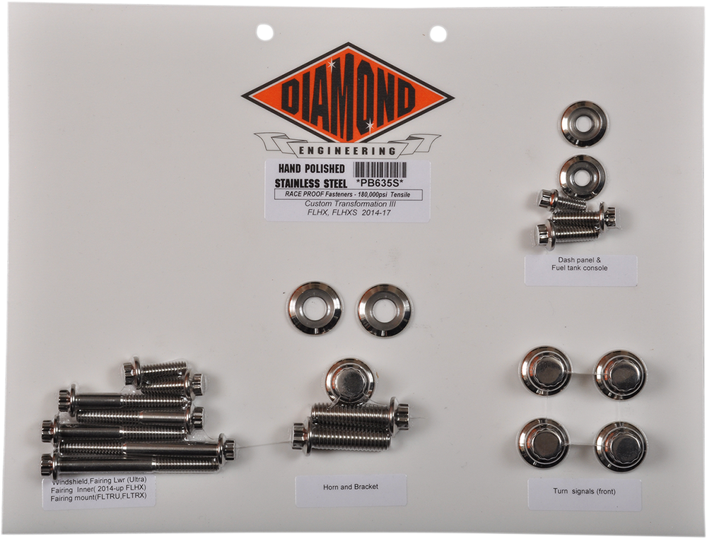 DIAMOND ENGINEERING Bolt Kit - Transformation - 12-Point - Touring PB635S is backordered and will ship as soon as it is back in stock.